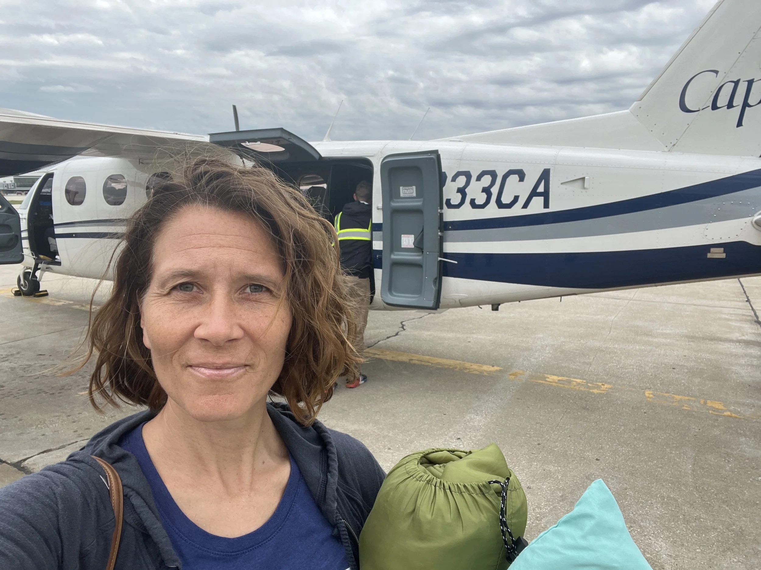 I was going to fly in a Fisher-Price airplane. I doubted its ability to fly us anywhere. We were told exactly where to sit. The first man sat up front. Julie was alone in her row, and when I say row…I mean she was on the left seat and the right seat was empty. They had me sit behind Julie right next to a grown man—our weights balanced on each side? The final passenger sat behind us.