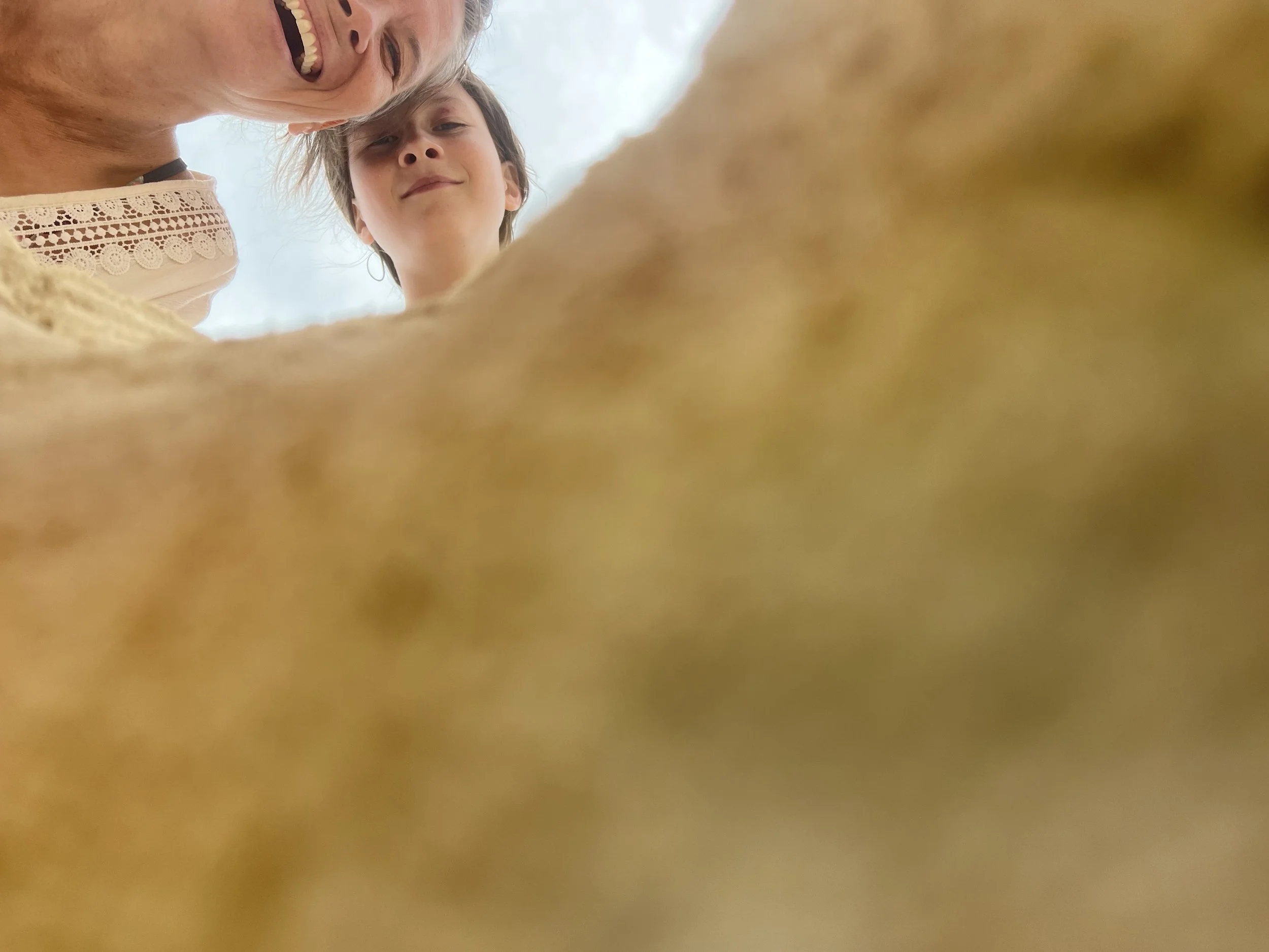 Norah and I tried scooping out sand in a heart shape again and again. Norah had some tips she had learned from her first failed attempts, and they were quite helpful. Regardless, our heart was pretty abstract in form. After trying for quite some time to get the best shape we could, we decided to start placing my phone in the hole and take some pictures.